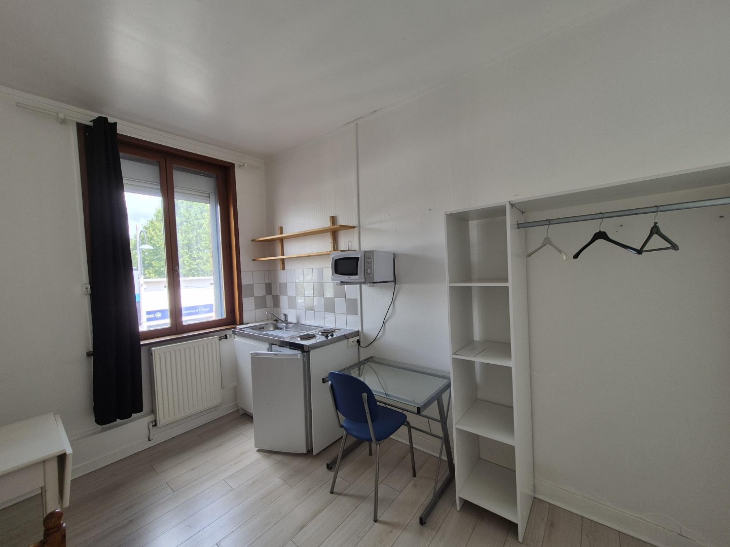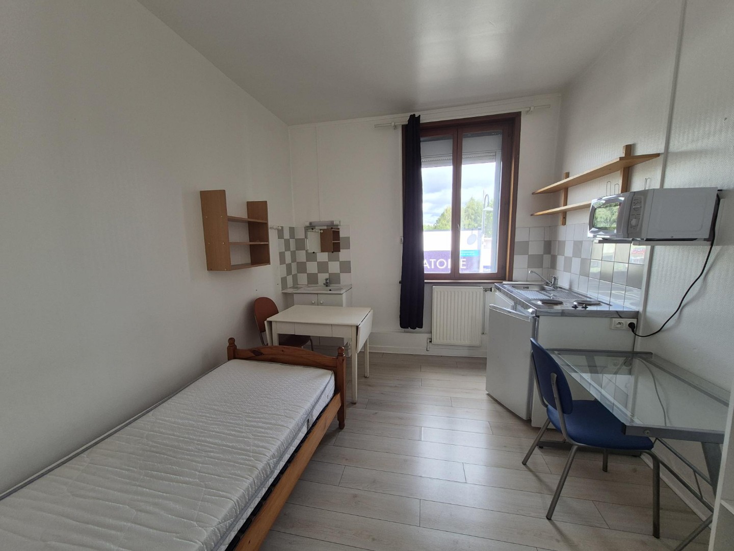 Jolie chambre meublée comprenant un lit d’une personne, un bureau, une table, dressing, une kitchenette privative ainsi qu’un lavabo. La douche et le wc sont en communs deux autres chambres. – Les informations sur les risques auxquels ce bien est exposé sont disponibles sur le site Géorisques : www.georisques.gouv.fr