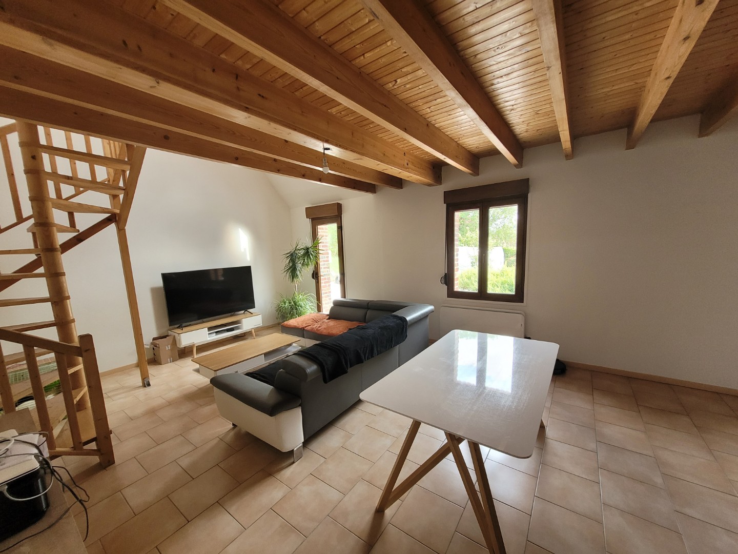 Maison individuelle meublée de type longère, séjour salon de 34 m², cuisine aménagée et équipée, chambre et salle de bains au rez-de-chaussée, Au 1er étage : une mezzanine et une chambre Joli terrain avec vue dégagée sur la nature. Garage A seulement 10 minute de Saint Omer ! – Les informations sur les risques auxquels ce bien est exposé sont disponibles sur le site Géorisques : www.georisques.gouv.fr