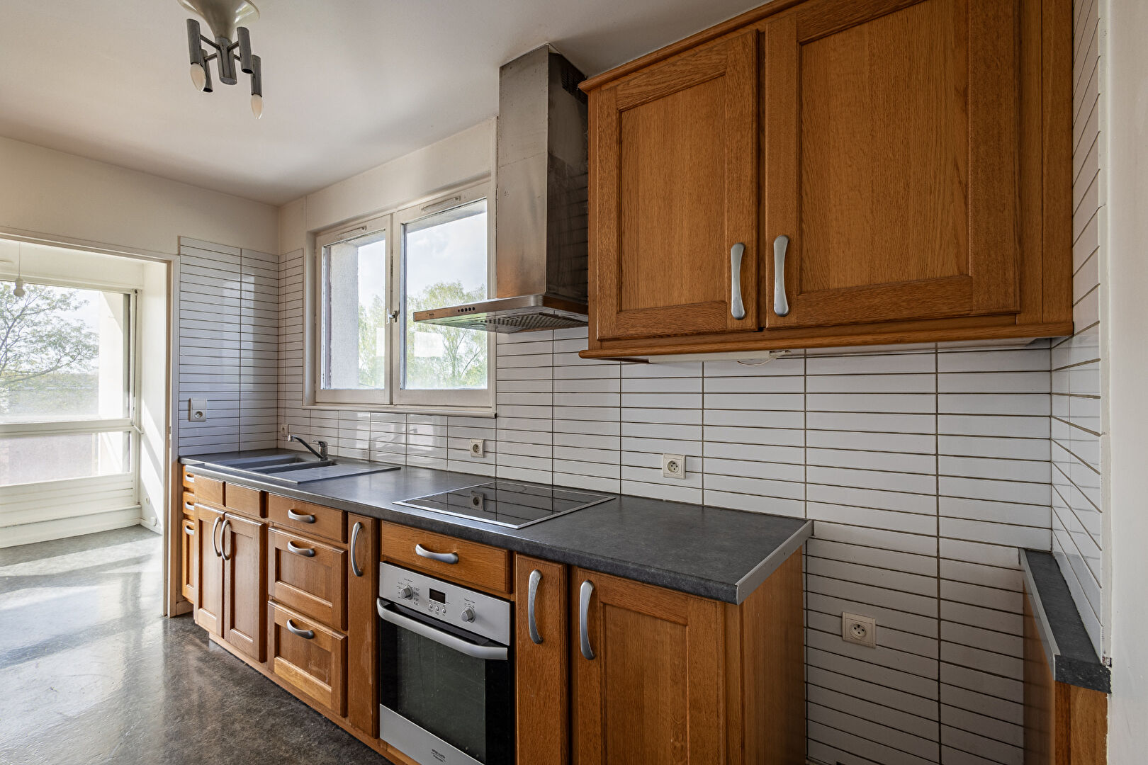 La cuisine séparée offre un accès direct à la pièce de vie ainsi qu’à l’entrée, apportant une circulation fluide et agréable.