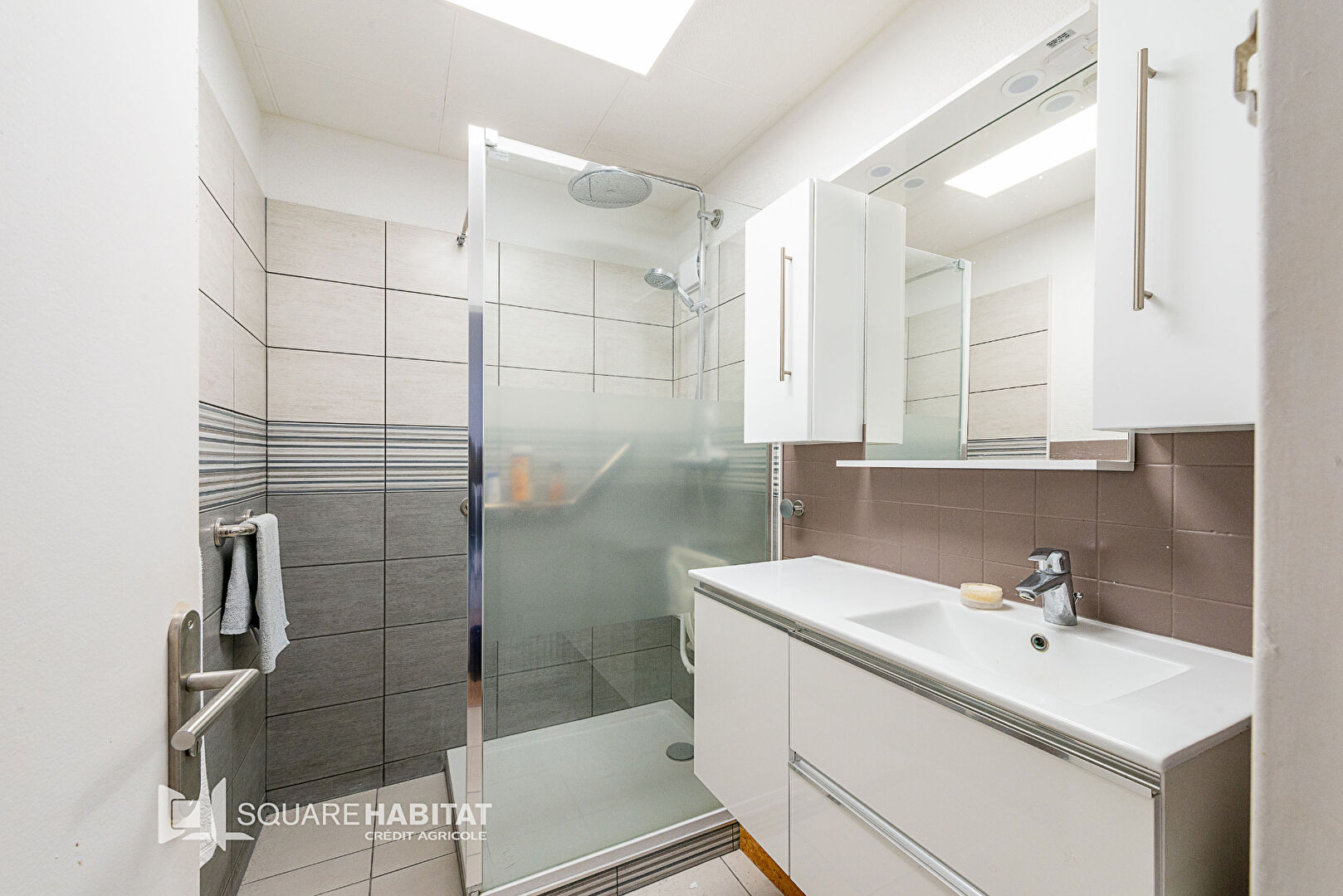 Confort et Praticité : Une salle de bain moderne avec douche pour votre bien-être quotidien.