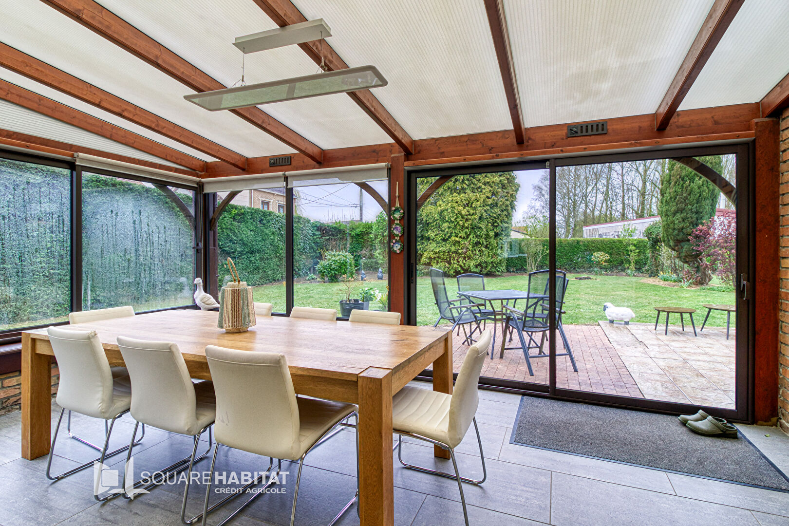Sur une parcelle d’environ 1 040 m² de terrain clos un ensemble immobilier comprenant une maison de type fermette intégralement rénovée comprenant au rez-de-chaussée : un hall d’entrée, une salle à manger d”environ 25 m² , un salon de 40 m² doublé d’une véranda, une cuisine équipée, un dégagement, un wc avec salle d’eau et une chambre