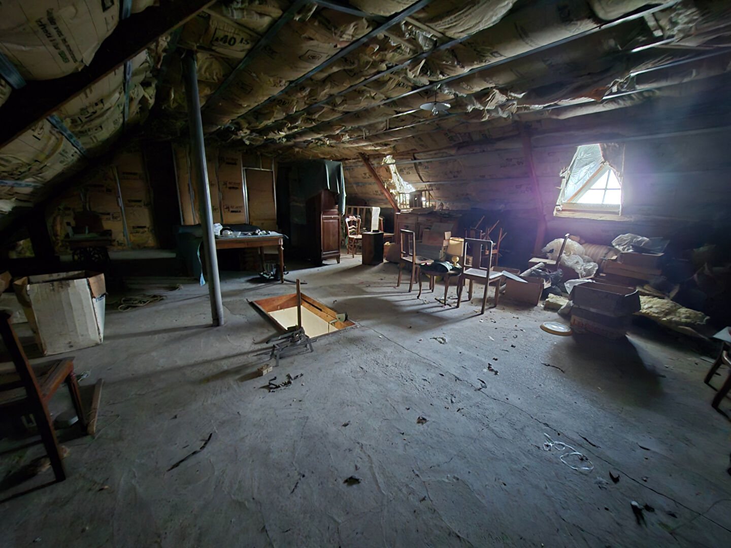 Vous trouverez au rez-de-chaussée un hall desservant un salon séjour avec poêle à bois ouvert sur la cuisine ,une salle de bain ,wc ainsi que deux chambres . A L’étage une possibilité d ‘aménagement de plus 60 m² pour y faire une salle de jeux , ou des chambres supplémentaires. Garage avec accès sur le jardin .