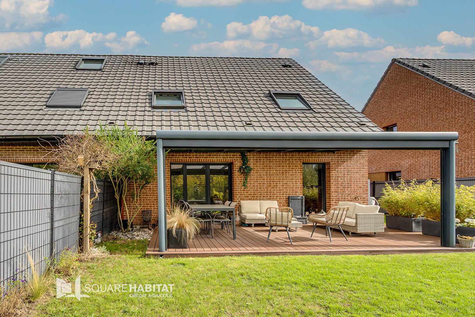 Jolie terrasse sous pergola et jardin sans vis-à-vis.