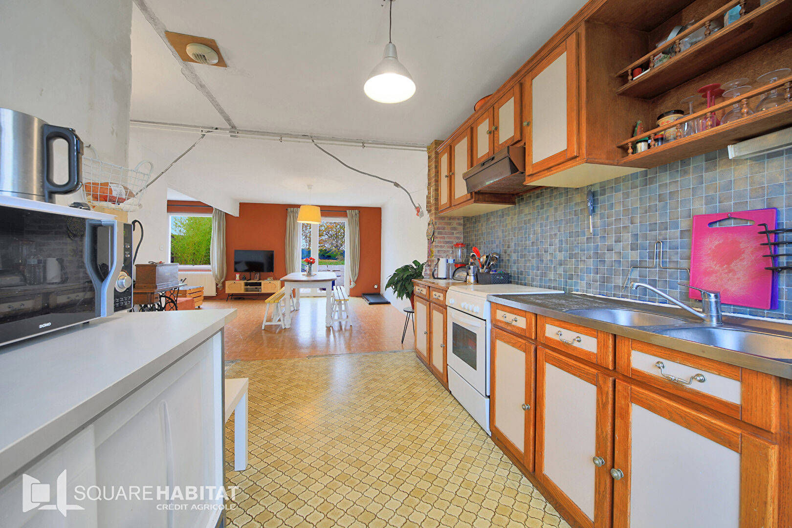 Exclusivité SQUARE HABITAT CAMBRAI, Maison de résidence en recul de route , proposant une entrée, une cuisine meublée et équipée ouverte sur le séjour, un garage et un sous-sol. A l’étage 3 belles chambres et une salle de bains terrasse et jardin clos.