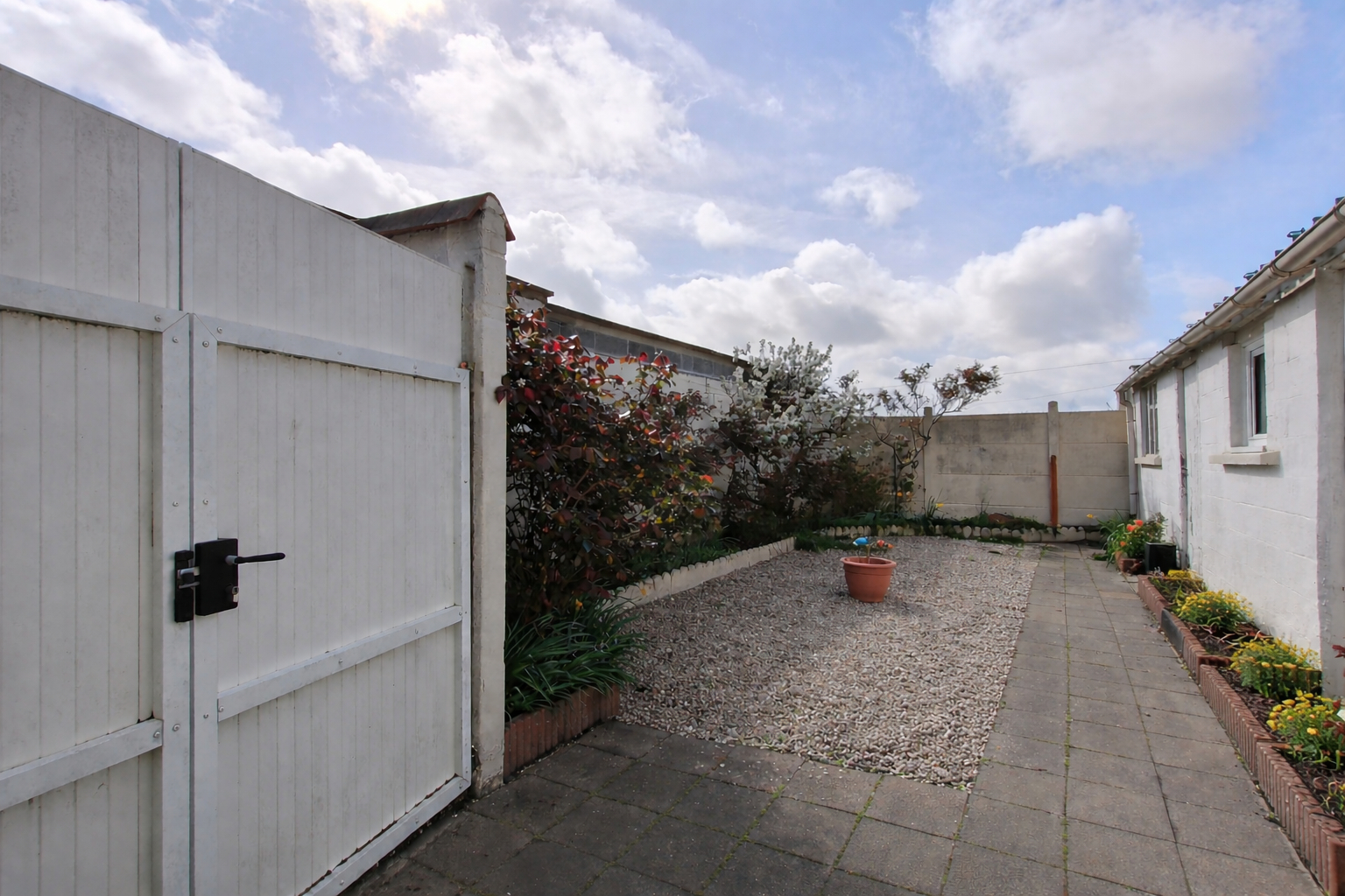 L’extérieur de 45m² dispose de dépendances de stockage et bénéficie d’un accès vélo, moto ou poubelles…