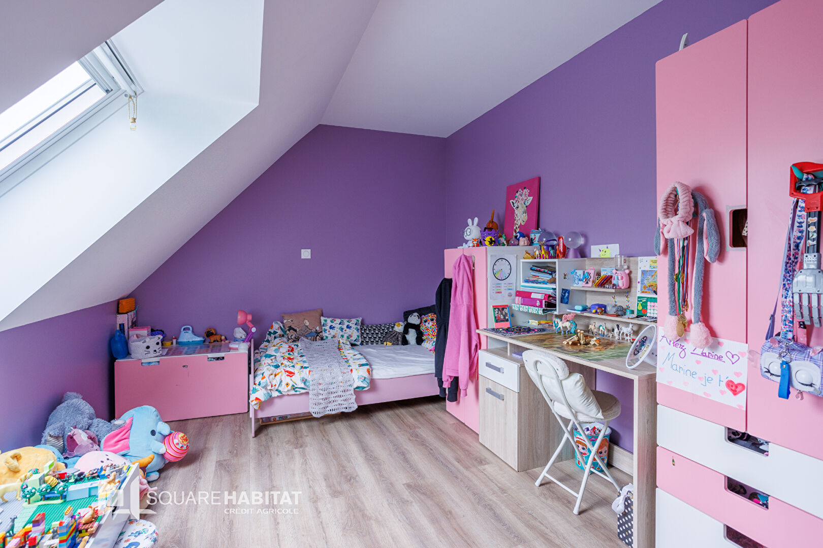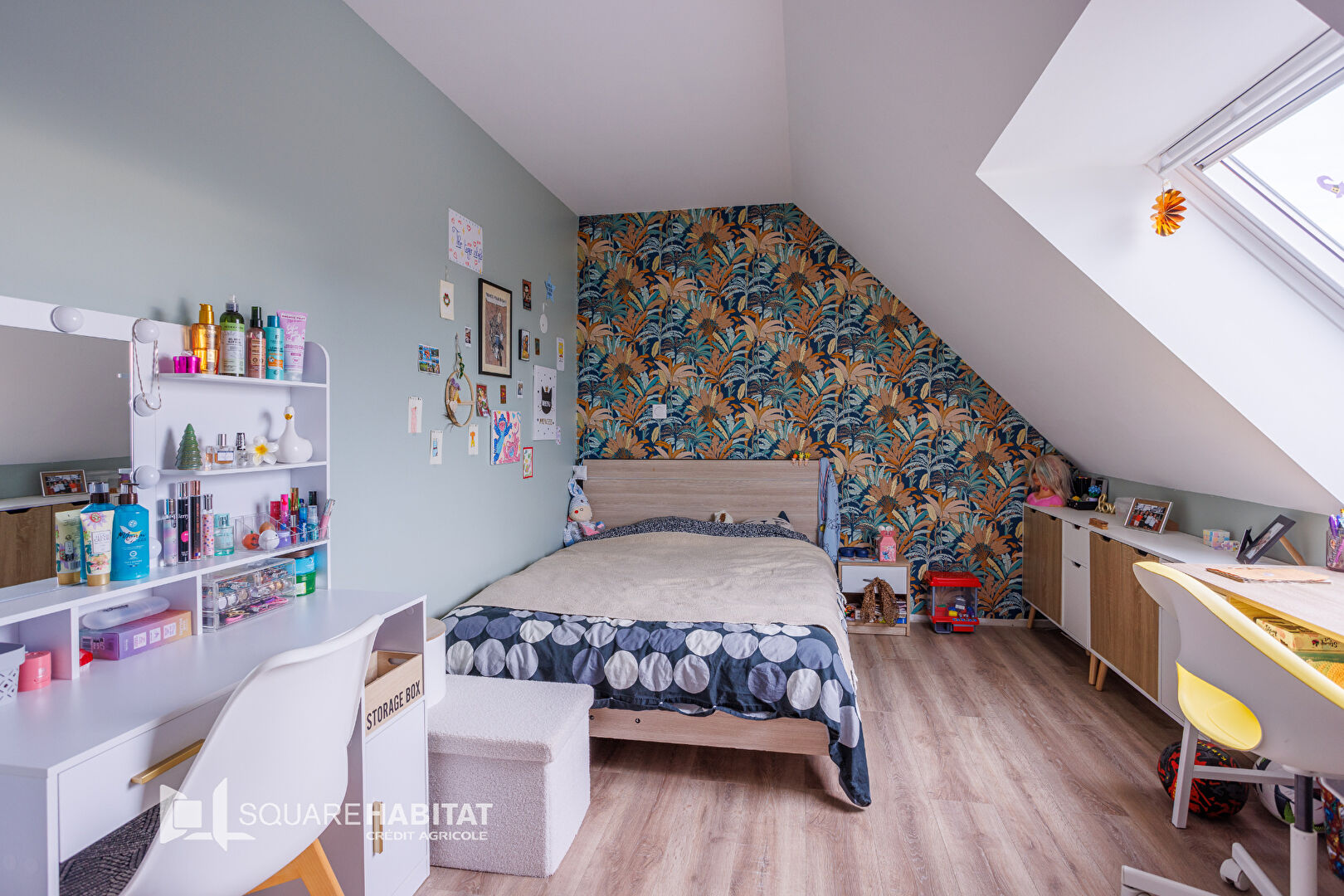 A l’étage on y retrouve une salle d’eau, 2 chambres, 1 dressing, le palier est grand et ouvert sur 9m², idéal pour y faire un coin lecture ou ce que bon vous semblera